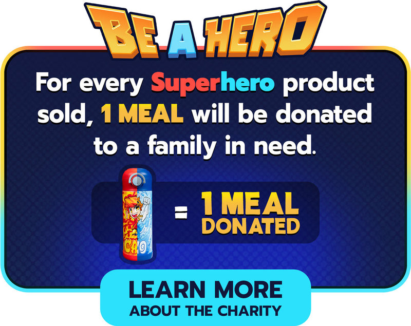Power up your hydration with the Cash & Nico Superhero Water Bottle! Packed with bright artwork of Super Cash & Nico, this bottle makes staying hydrated feel like part of the mission and your choice of Nico blue or Cash red toppers!